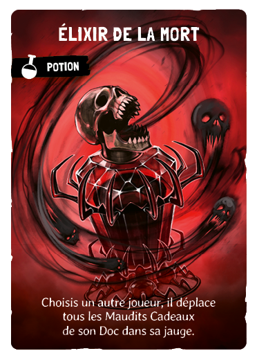 Choisis un autre joueur, il déplace tous les Maudits Cadeaux de son Doc dans sa jauge.