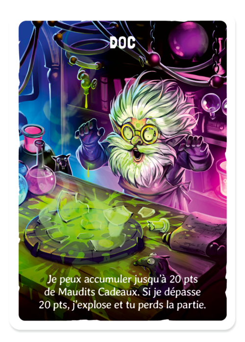 La règle est super simple : chaque fois que l'on t'offre un Maudit Cadeau avec succès (c'est à dire que tu l'as accepté avec plaisir...) tu peux alors choisir soit de le laisser dans ta maudite jauge, soit de le donner à Doc.